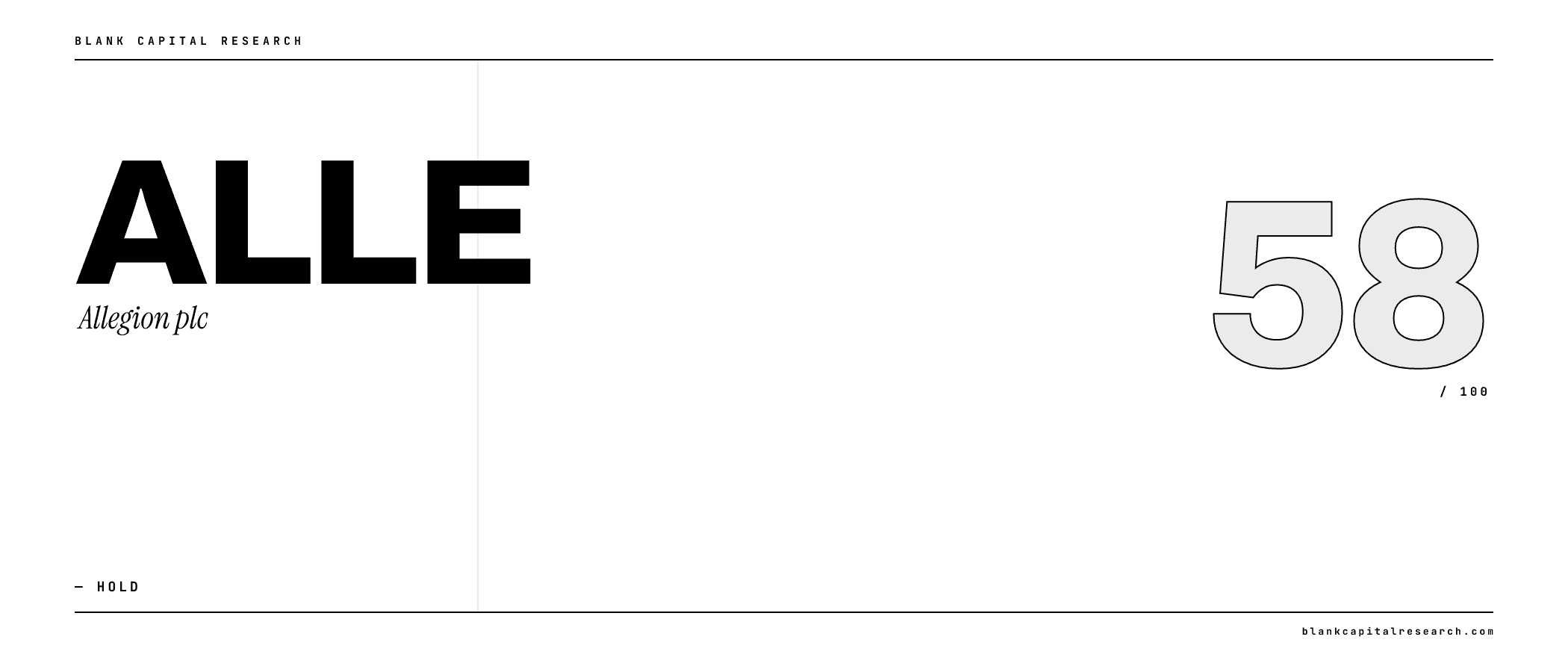 $ALLE Allegion plc | 58 | 57 | 58 | 74 | 20.8x | 18.4x | 32.4% | 12.8% | 45.2% | 21.6% | 16.7% | 10.8% | 1.1% | 96.0x | $15.2B | ||