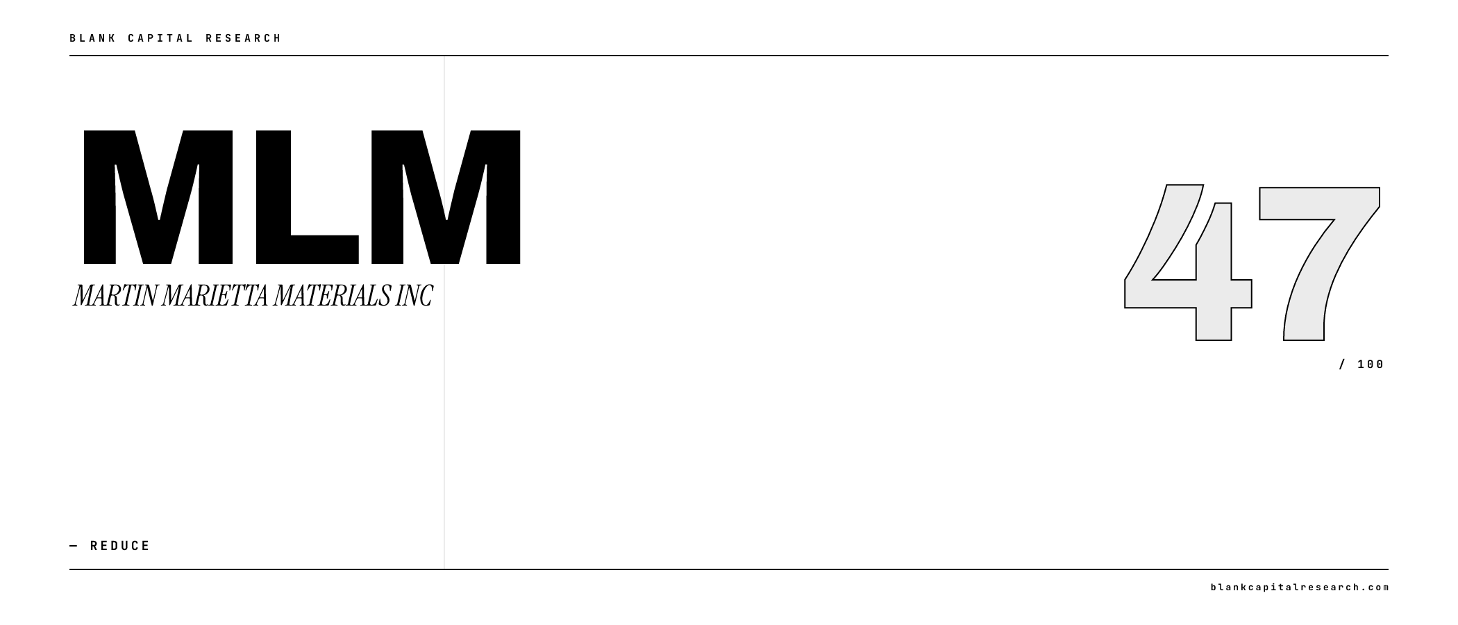 $MLM MARTIN MARIETTA MATERIALS INC | 48 | 47 | 47 | 38 | 33.9x | 28.4x | 12.2% | 6.5% | 30.7% | 24.6% | 18.0% | 4.7% | 0.5% | 53.0x | $38.0B | ||
