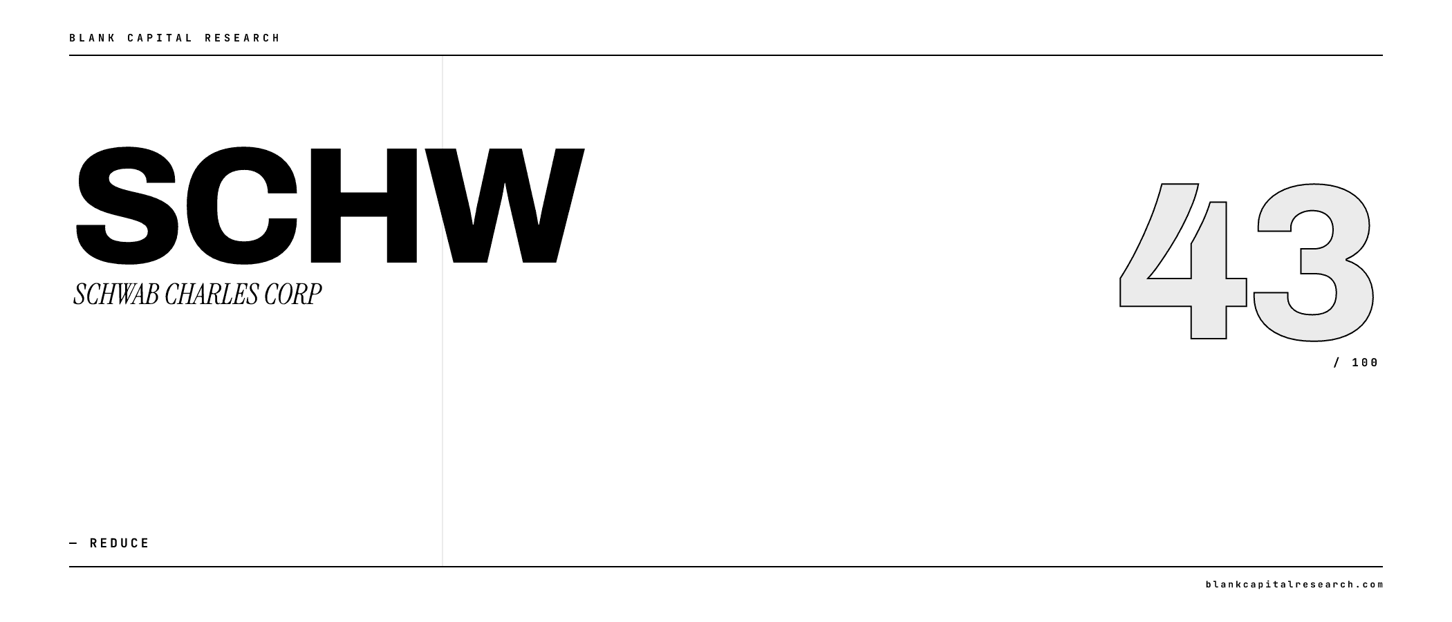 Our analysis does not support a constructive view on SCHWAB CHARLES CORP at this time. The combination of limited competitive advantages, high uncertainty, and poor capital allocation suggests unfavorable risk-reward at current levels. We recommend investors avoid new positions and existing holders consider reducing exposure.